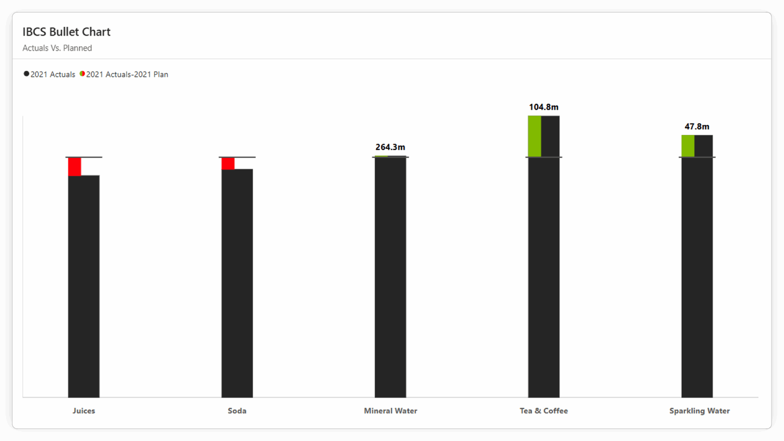 IBCS Bullet Column: Adheres to the International Business Communication Standards through features like uniform number scaling, target position, integrated variance for clear and consistent reporting.