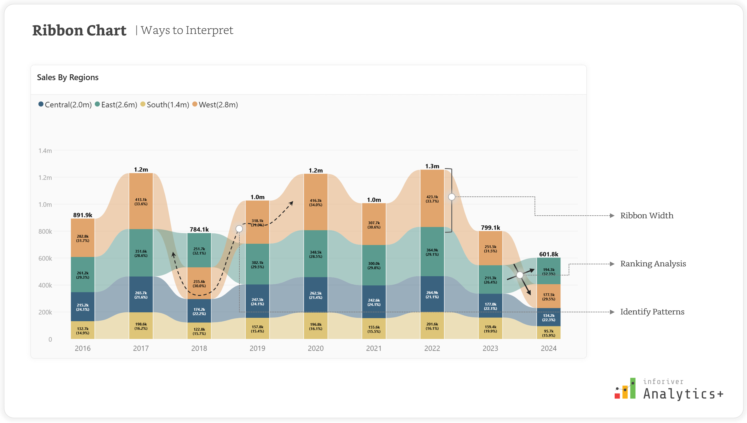 Analytics+ provides powerful features to help you effortlessly implement best practices for Ribbon charts, transforming your data into clear and compelling narratives.